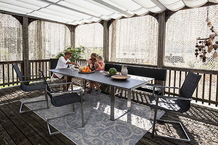 Johannes Einsiedler: „Die Terrasse wird in Zukunft so bequem und individuell wie der Wohnbereich. Edle und kratzfeste Outdoor-Keramiktische zentimetergenau nach Maß, hochwertige Nosagfederung, Allwetter-Polster und -Überzüge und bequeme Outdoor-Bänke gibt’s bei uns noch einmal zu Preisen wie vor der Teuerungswelle – solange unser Vorrat reicht.“