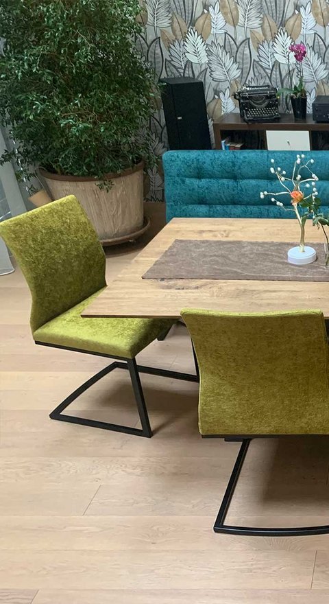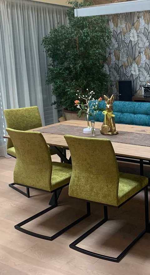 Untergestell aus Stahl oder Edelstahl in verschiedenen Farben erhältlich, als Freischwinger oder 4-Fuß erhältlich